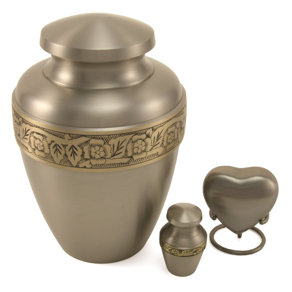 Simple in its shape and chaste in its design, the Avalon series is a lovely tribute in traditional metal finishes. Each can be personalized to reflect the personality of a loved one - the engraved flowers at its shoulder adding their own class and elegance.