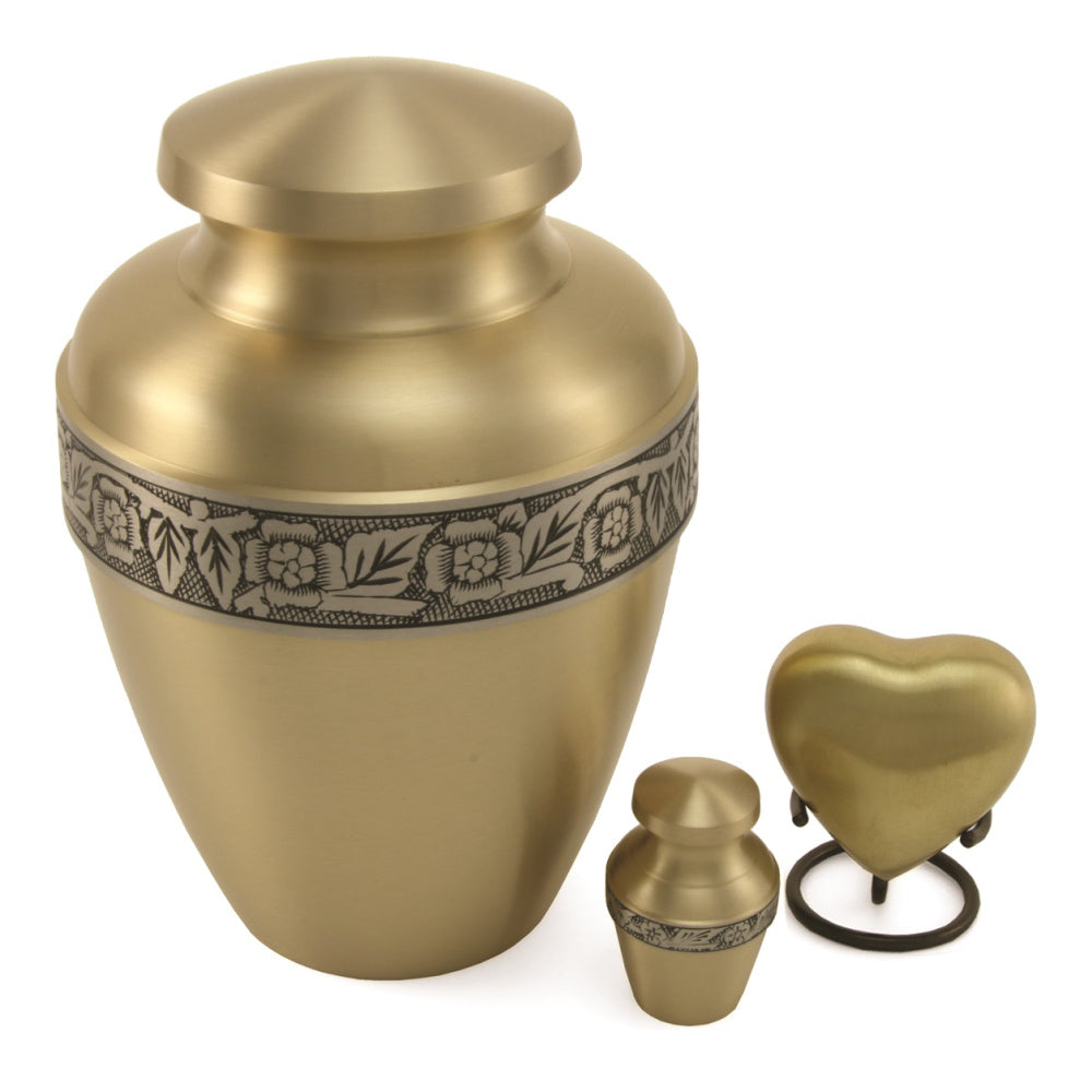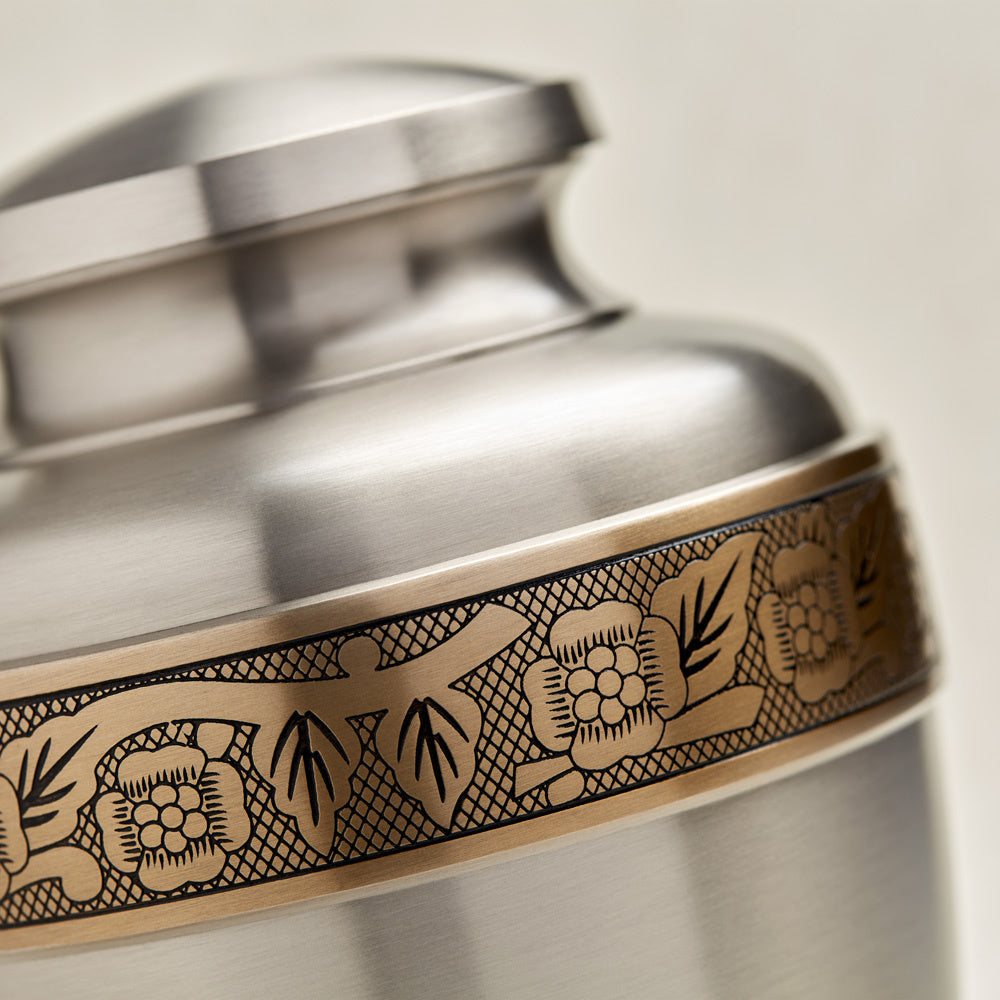 Simple in its shape and chaste in its design, the Avalon series is a lovely tribute in traditional metal finishes. Each can be personalized to reflect the personality of a loved one - the engraved flowers at its shoulder adding their own class and elegance.