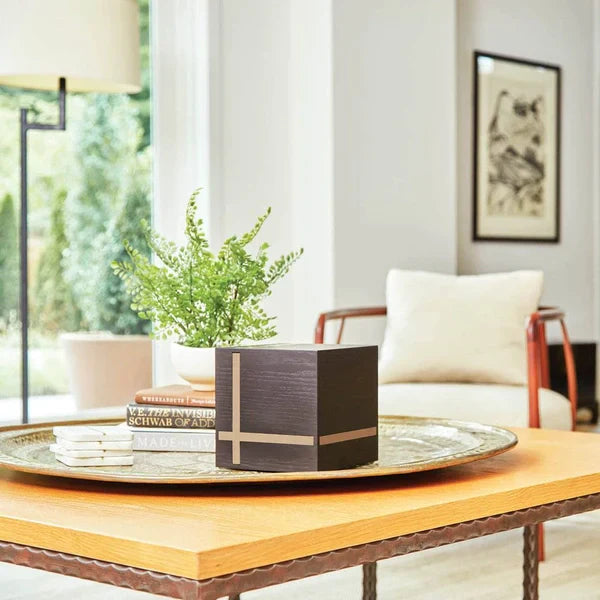 The striking Bristol is an eye-catching urn that comes with either a natural bamboo or gloss grey accent. This sleek urn matches modern decor in the home and is a beautiful way to honor a loved one and has a discreet opening that locks on the bottom of the urn to fill.