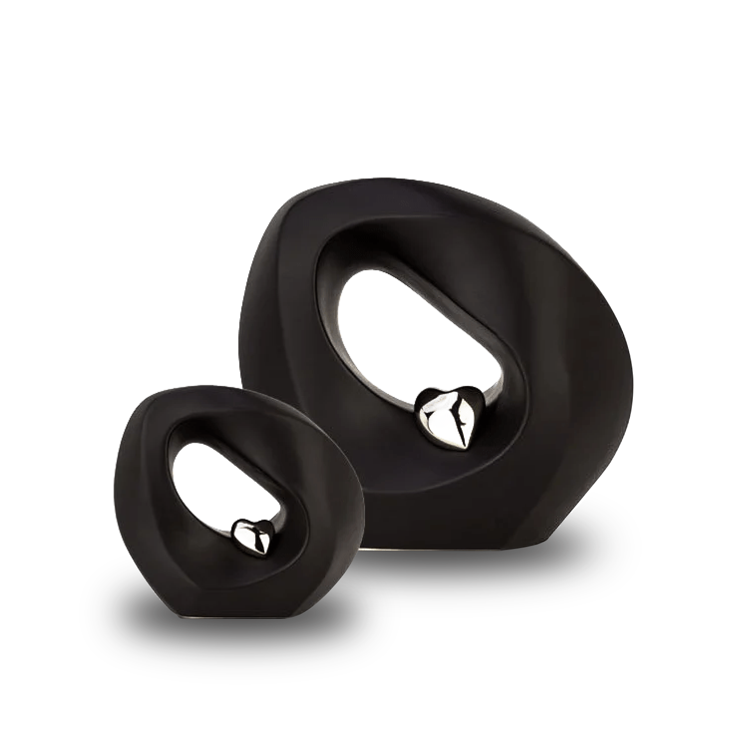 This stunning modern memorial urn is handcrafted from porcelain and provides a unique and beautiful look. It comes in two colors (white and black) and two sizes (full size and keepsake). Place this beautiful piece of art on a living room table, the mantle, or in the bedroom to keep your loved one close.