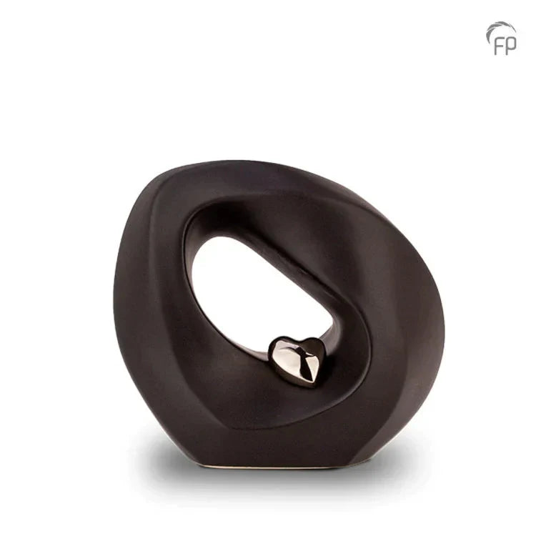 This stunning modern memorial urn is handcrafted from porcelain and provides a unique and beautiful look. It comes in two colors (white and black) and two sizes (full size and keepsake). Place this beautiful piece of art on a living room table, the mantle, or in the bedroom to keep your loved one close.