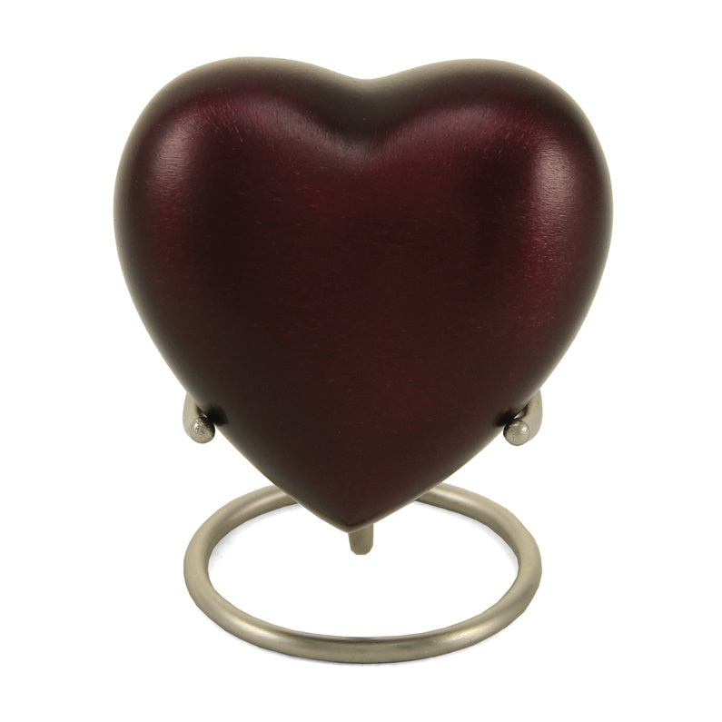 The Full Size Monterey Urn measures 11.9”H x 6.2” Diameter (200 cubic inches), the Keepsake Mini is 3.6”H x 2” Diameter (3 cubic inches), and the Keepsake Heart is 2.7”H x 2.9”W x 1.6” Diameter (3 cubic inches).